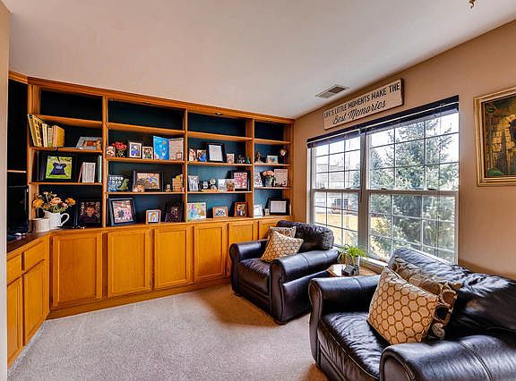 Bright & inviting Fox Hollow townhouse. Newer carpet, custom blinds, Pottery Barn style paint & decor. Open kitchen boasts new Corian counters, mosaic backsplash, new DW, tile floor, table space & bay window. Vaulted ceilings thru-out. Separate dining room. Relax by the fireplace in the living room. Full master-suite. Den w/built in bookcases (can be converted into 3rd bedroom) Enjoy the pond & open space views from the balcony. Basement. 2 car garage. Association is FHA approved!