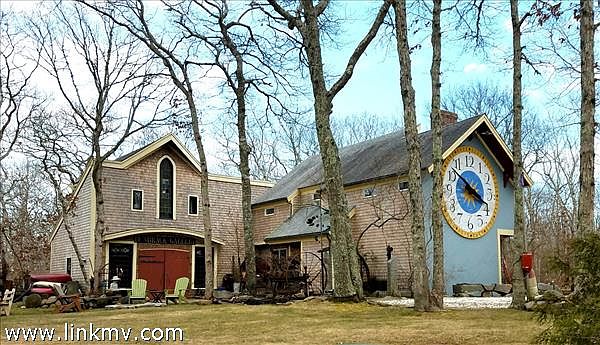 A must see hidden gem this home lies on 1.52 acres featuring over 100k of reclaimed antique stone work. Located in a very private setting down island, 10 minutes from ferry and 15 minutes from beaches, this home has the feel and tranquility of being up island. The main house offers 3 bedrooms 2 baths with an airy and open floor plan. Beautiful reclaimed wide antique oak flooring as well as other artistic touches truly gives this home the authentic feel of Marhtas Vineyard. An attatched 1400 sq ft 2 story addition with beautiful large stain glass windows ( 4x6ft ) is ready to be easily finished and offers an opportunity to almost double the homes square footage at 2900 sq ft. In addition to added living space it would also make a great home office or artist studio.The property setting is on high ground and overlooks a 9 acre pasture with rights to graze two horses. Access to Little Duarts Pond also accompanies ownership. This property is a great opportunity as a rental/investment home with the additional opportunity to add substantial value with finished addition. Difficult to capture this home in pictures, truly a must see !! And ,YES !, the clock works and keeps perfect time. It is fully modernized with a gps unit for accuracy.