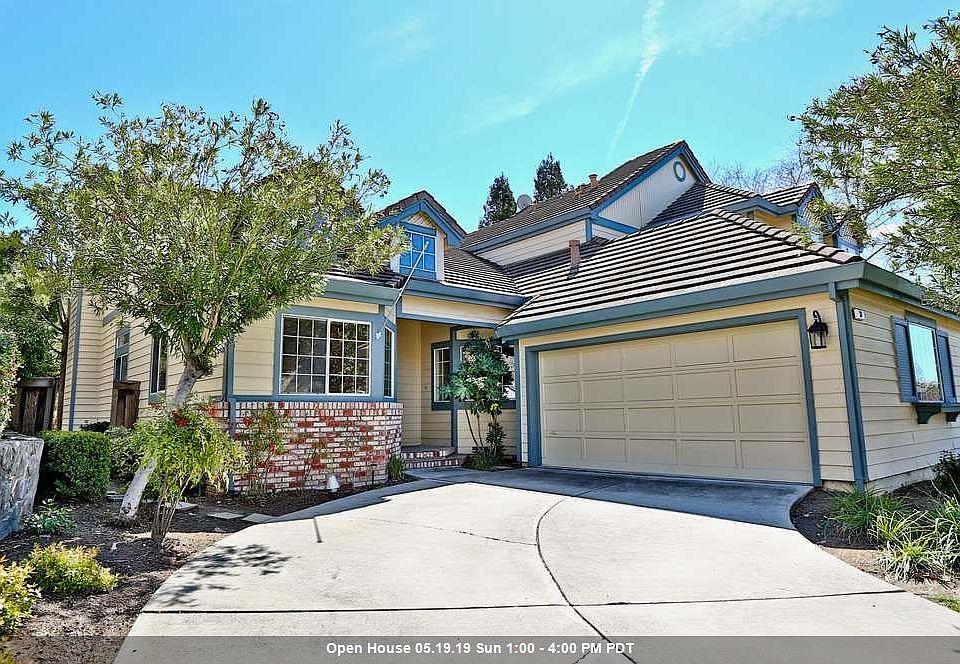 Highly Desirable Single Story on a quiet court setting! NEW WOOD FLOORING THROUGHOUT LIVING AREAS & NEW CARPET IN BEDROOMS! NEW INTERIOR & EXTERIOR PAINT! Open floor plan features living room with soaring ceiling & cozy stone fireplace with mantle. Large kitchen offers an abundance of oak cabinets & sunny eating nook. Spacious master bedroom with large closet. Master bath offers oversized tub/shower. Inside laundry with washer/dryer. Backyard features trellis covered deck and mature landscape. Walking distance to downtown, library, community pool & playground!