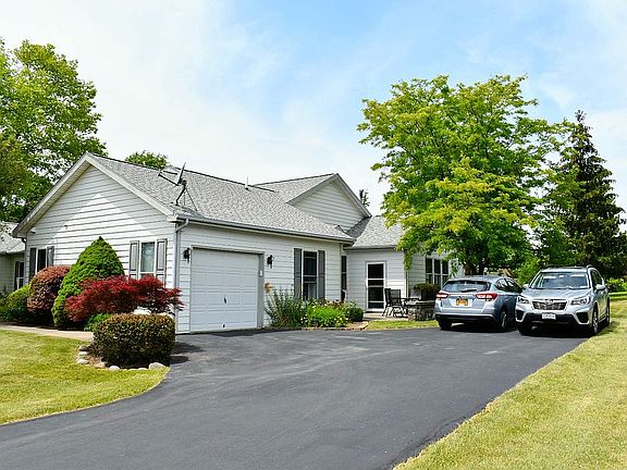 Bright and spacious turn-key contemporary split home - single level living at its best! Airy living room with wood floors, cathedral ceilings, skylight, and a gas fireplace with marble tile surround. Bright, large and versatile all season sunroom that can be used for any purpose. Spacious kitchen with a nook eat-in area and free standing island. Master suite with a whirlpool tub and two walk in closets. Two extra spacious bedrooms; one with an attached full bath and two closets and the other currently being used as a nursury. Easy access to newly renovated laundry room with brand new washer, dryer and sink and attached single car garage. Storage shed in the back yard that should fit all lawn equipment needs. Energy efficient with radiant in-floor heating, hydro-baseboards and ceiling fans. The entire interior of the house from moldings to ceilings have been freshly repainted. Recently replaced roof and skylight in the last five years. Beautiful landscaping with an outdoor patio, walking trails just a few steps out the door, two near by parks, close to shopping, restaurants and the airport. This neighborhood is one that we fell in love with and we think you will too! Note this is for sale by owner. If planning to use a realtor the buyer is to be responsible for paying their commissions. If interested please call or text 716-969-6436 to set-up an appointment. If I miss your call please leave a message with your details and I will get back to you ASAP.