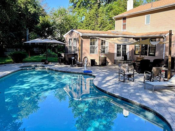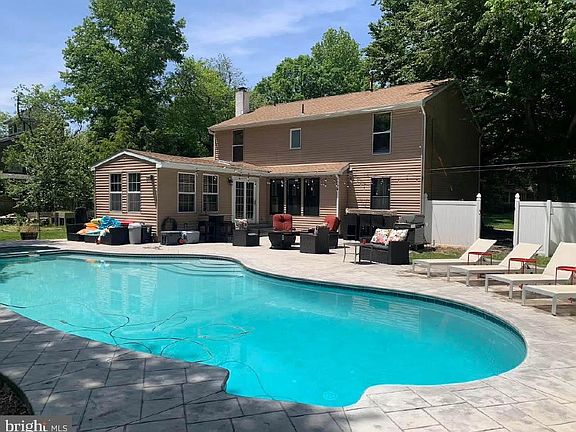 Welcome to your dream home in the desirable Kings Grant community in Evesham Township. This lovely home is situated on a large corner lot and backs to a tree-lined wooded area affording you privacy and tranquility. The over-sized rear yard features an expansive stamped concrete patio, inground heated pool and spa combo, and a Weber natural gas grill. It is the ultimate place for a fabulous staycation! The pool and spa underwent a total renovation --over $40,000--in 2020. The natural gas lines for both the pool heater and the natural gas grill were also run in 2020. The inside of this home has been tastefully updated in recent years. It features 4 bedrooms and 2.5 baths, a wood-burning fireplace, engineered wood flooring on the first floor, and a huge 21' x 12' all-season sunroom with skylights. The sunroom also has a sliding door that provides direct access to the rear yard and pool/patio area. The kitchen features a large 7+ foot island with pendant lighting and a panoramic view of the pool and rear yard. Designed for functionality and convenience, it also has updated stainless steel appliances and a pantry closet. New energy efficient windows were installed in the kitchen and dining room by the previous owner in 2021. The remaining windows, along with screens, a brand-new sliding door, and a new front door have been purchased but not installed. They will be left with the home for the Buyers to have installed at their own expense post-closing. This is truly a home you don’t want to miss!