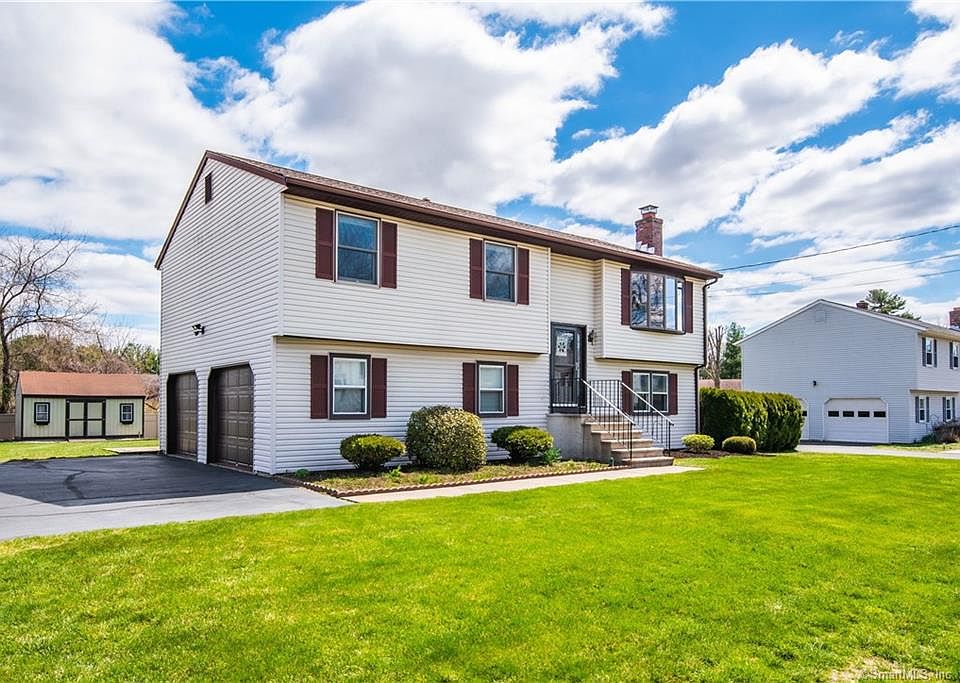 Welcome home to Plainville, CT This meticulous Raised Ranch is perched on a landscaped fenced .35 acre lot and offers a solid bone structure, many updates and a bright crisp inviting layout Inside, offers 3 bedrooms, 2 full bathrooms, 1,938sqft including the walkout lower level & central air w/2 zones Kitchen features newer cabinets, granite counters and overlooks your dining area that offers sliding doors to your private deck. Kitchen and Dining room open to your living room with bay window and plush carpet. Main level also features generous bedrooms and updated bathroom with tile, vanity & granite countertops Walkout Lower Level with large family room, brick fireplace & full bathroom. Outside gives you a fenced yard, oversized driveway, 2 car garage, covered patio & 14x8 deck that overlooks your outdoor oasis. There is even space for a pool should that be on your dream home list Anderson windows are only 15yr young with the exception of the kitchen & living room, Shingled Roof is only 17yr & the oil tank and energy efficient furnace are original. New wall-to-wall carpet lower level. Plainville is a great place to live as it is centrally located and only moments away from many dining experiences you crave, loads of shopping and exploration awaits as major highways and international airports easily whisk you way to either a fun filled day or vacation away. This home won't last, so we can start planning how to make it yours before someone else grabs it