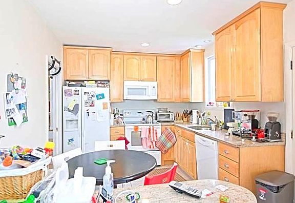 Sunny single-family home for rent in "Oak Hill" neighborhood of Newton. 3 spacious bedrooms and 2.5 bathrooms! Available May 1st, 2021 (date can be flexible). Rent only $4200 / month. Gorgeous open floor plan: full-size living room & dining room with soaring ceilings. Renovated eat-in kitchen has granite counters. Great closet space. New windows & updated heating / electrical systems. Amazing outdoor space: sun-drenched deck is perfect for entertaining, large green backyard, and bonus garden area! Garage parking spot and additional driveway spots. Amazing central location: quiet neighborhood is a short drive to Newton Center, Chestnut Hill shopping & restaurants, Brookline, Legacy Place in Dedham, etc.! Won't last!