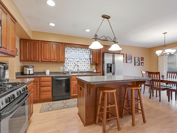 A spacious 4 bedroom ranch with new furnace and central air and remodeled kitchen & two full baths. Island kitchen. Stainless steel appliances and wood laminate floors. Living room with woodburning fireplace. Wood laminate floors throughout (except one bedroom). Large deck with a fenced backyard. Maintenance free exterior. Walking distance to outstanding parks, schools, Rainbow Falls waterpark, shopping , dining, fitness center, library, movies and more. Easy access to expressways too.