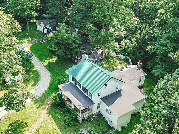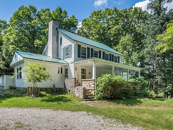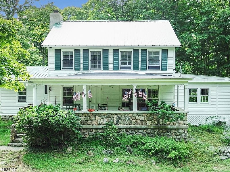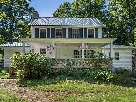 Built in the early 1900s, this charming home still has the old outhouse. The garage & storage buildings are original from the chicken coop to the barn. Now they are great storage for kayaks, pottery, bicycles and gardening tools. A formal LR & DR welcome you from the covered front porch. An updated eat-in kitchen offers a vaulted ceiling & door to the deck. A majestic family room boasts a magnificent wood burning stone frpl., beamed ceiling & pretty glass french doors. The master bedroom on the 2nd floor has a hand-turned beamed ceiling & spacious closet. A den & 2 bedrooms are located on the 1st floor & the rooms all have wide plank wood floors. Outdoor living on this private property has a stone patio terrace constructed from rocks & stone found on the land & built by a family of 11 children around