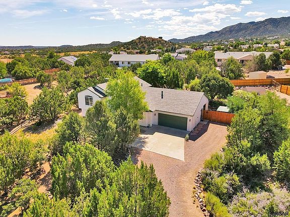 This stunning 4-bedroom, 3-bathroom home nestled in Dawson Ranch offers a serene and tranquil ambiance that invites relaxation and enjoyment. Entering the main level, you're greeted by the kitchen featuring terra cotta tile flooring and striking granite countertops & island. Equipped with newer appliances, large windows and a patio door that flood the space with natural light, seamlessly blending the interior with the exterior park-like setting. Adjacent to the kitchen, the living room exudes warmth and comfort with a gas fireplace and vinyl plank flooring. A short flight up elegant stairs leads to three bedrooms and 2 full bathrooms, including a spacious master bedroom boasting incredible vistas of Pikes Peak. The master bathroom features a contemporary look as well as double sinks and a luxurious jetted tub. The two additional bedrooms on this level are generously sized and feature built-in shelving and spacious closets. On the garden level, you'll discover another bedroom, a giant game room, a 3/4 bathroom and a utility room. The outdoor space of this home is truly exceptional, offering a haven for relaxation and recreation. The front and rear yards are landscaped to perfection, with over 100 trees, native plants, flowers, and bushes, the garden-like yard is a feast for the senses. You will find further delight in private trails, sitting areas, and a sprinkler system with four zones ensures minimal maintenance. This home exudes beauty on the inside and out.
