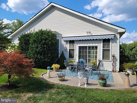 Spectacular and grand define this rare Sanibel model home located in the highly desirable Four Seasons at Historic Cranbury adult community. This 3 bedroom, two-bath home includes high ceilings, beautiful hardwood floors, carpeted bedrooms, well-appointed blinds and window treatments throughout, crown molding, and more! This home features a formal living room and dining room with crown molding, 42” kitchen cabinets, granite countertops, a butler’s pantry, a large bay window, and newer stainless steel appliances. Striking columns lead you into the family room with a gas fireplace, hardwood floors, and ceiling fan. A sliding glass door brings you to a stunning paver patio with a retractable awning overlooking a spectacular backyard! The master bedroom has a large walk-in closet and a master bath with double sinks, soaking tub, glass shower enclosure and a separate toilet area for privacy. The furnace and A/C condenser were replaced in 2019.