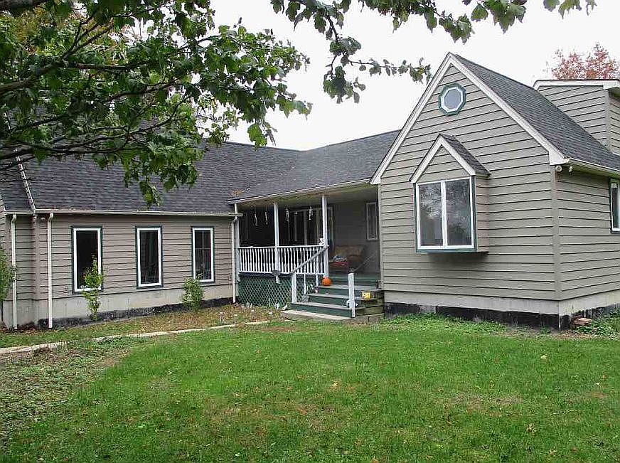 3 bedroom, 2.5 bath ranch on 6.8 acres. Private, wooded setting. Huge kitchen & impressive cathedral ceiling in expansive and natural-lit living area complete with exposed wooden beams and wood stove. Main bedroom with large attached bath and 2 walk-in cedar closets. Large back deck and front covered porch. Walk-out basement.