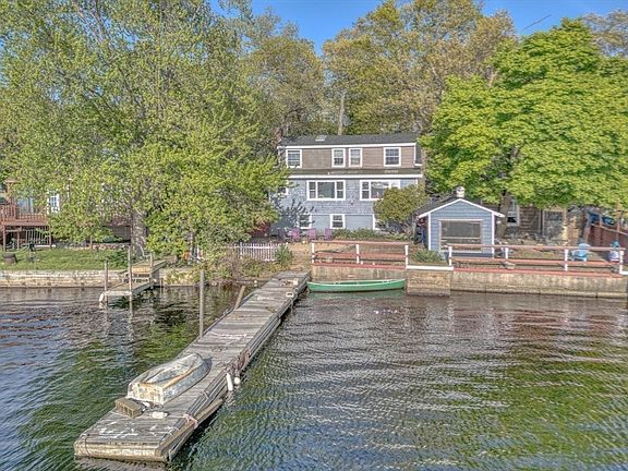 Breathtaking sunsets! Don't miss this rare opportunity to own on the waterfront of beautiful Whitman's pond. Large private dock to fish or keep your boat. Upon entering into the renovated main level you are greeted with huge picture windows displaying the beauty and serenity of the pond. Brand new kitchen with stainless appliances and butcher block countertops. The finished basement is utilized as a fourth bedroom with the second full bathroom and private walk out access. The upper level has 3 bedrooms with gorgeous views. The backyard offers a large enclosed cabana and relaxing sitting areas perfect for entertaining or enjoying the tranquility of your private waterfront home. Close proximity to commuter rail, dining, shopping and medical facilities.