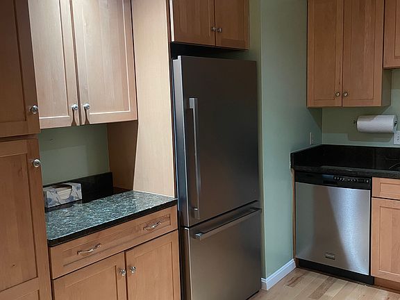 A must see! Check out this conveniently located 2 bed, 1 bath, second floor unit. Includes stainless appliances, granite countertops, and get this... a heated bathroom floor! Sliding door off the dining room leads to a private balcony. Recently updated and plenty of closet space, this unit is laundry ready with washer and dryer, as well as 2 off-street parking spaces and ample guest parking. Landlord will install air conditioning during summer months.