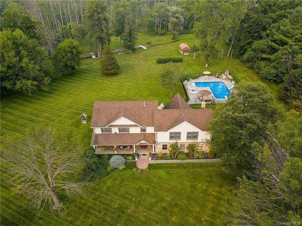 Resort style living at its finest. 5 br, 2.5 ba custom colonial loaded with designer finishes and endless amenities. Massive great room featuring 20' ceiling, stone fireplace & custom bar w/granite counter. Chef's delight kitchen w/six burner Viking range, double oven, large pantry, granite counters, breakfast bar, plus dining area. Formal living room and tremendous formal dining room creating the perfect venue for memorable meals with family & friends. Master br w/large walk-in closet & glamorous ensuite bathroom w/tile shower, soaking tub and dual vanities. Four additional well proportioned bedrooms & remodeled bathroom complete the second floor. Incredible backyard oasis includes 20 x 40 saltwater pool w/paver patio & poolside stone fireplace. Enjoy endless backyard cookouts this summer via the outdoor kitchen, including pizza oven, built-in grill, deep fryer & sink. All situated on meticulously maintained 2.6 acre parcel w/stream. Ideal as a primary residence or weekend retreat. Additional Information: ParkingFeatures:2 Car Attached,