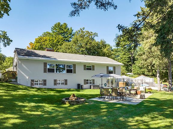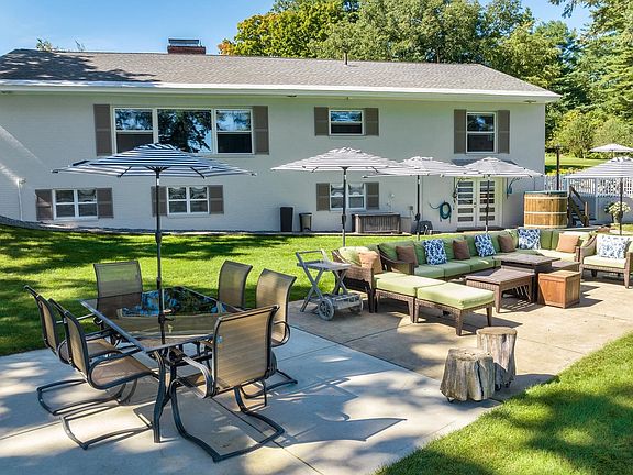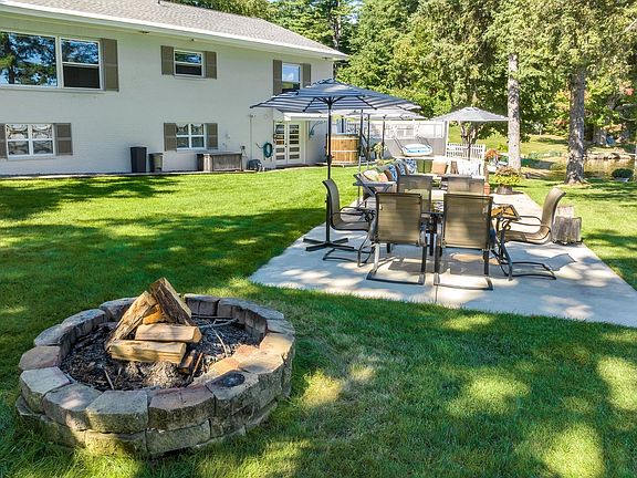 Located on a lush oasis with an expansive lawn, multiple patios, a walk-in sandy beach, large dock, a firepit and a beautiful view, this single level ranch style home is tastefully updated and beautifully maintained. When you step inside you will be impressed with the warm hardwood flooring complemented by oversized windows that overlook the level yard and the picturesque lake views. The kitchen is beautifully appointed and ample storage and work space. The dining room accommodated a crowd. A wood burning fireplace is a focal point in the large living room. There are three bedrooms and 2.5 baths on the main level in addition to a spacious mud room. The walkout lower level includes three additional bedrooms, an office and a game room. Location is convenient and close to town shopping and dining. The lot is amazingly private. Home is being sold fully furnished, so you can just move in and enjoy! Schedule a viewing or come and view it at an open house on Saturday, September 24 from 11:00A to 1:00P.