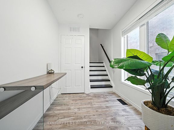 Welcome to this beautifully updated 2-bedroom, 3-bathroom townhouse in the heart of Ajax perfect for young professionals or couples starting a family. Step inside to find upgraded oak stairs (2023) and stylish laminate flooring throughout (2022). The kitchen shines with refinished cabinetry and appliances (2022), plus a modern backsplash and countertop (2021). Enjoy thoughtful touches like updated lighting, garage shelving, and a charming interlock patio out front. Nestled near Mulberry Meadows with trails, parks, and a playground ideal for weekend strolls. Minutes to top schools, shopping, medical clinics, and quick access to Hwy 401, 412 & 407. This home blends comfort, style, and unbeatable convenience.