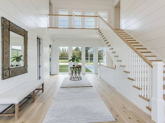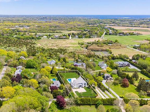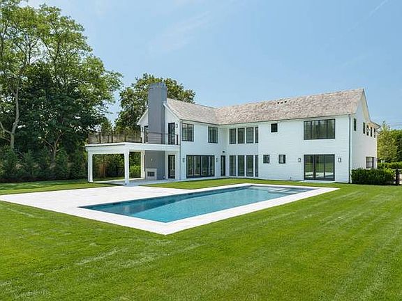 This new construction 6,757+/- sq. ft. home (includes finished lower level) is located on a quiet, little-traveled road in a bucolic area of Southampton, surrounded by open space but proximate to Southampton Village. The home is architecturally-designed for the property, where many of the rooms have oversized or double-height windows and door openings for views of the pool area and large backyard while the site still allows for wonderful privacy as mature landscaping borders the entire perimeter of the property. Enter from a covered porch to the light-filled two-story foyer. To one side is the formal dining room, which flows to a butler's pantry and eat-in kitchen with breakfast area, quartz countertops and island. The kitchen and pantry feature mosaic tile backsplashes and appliances by Sub-Zero and Wolf. Past the kitchen is the great room with a wood-burning fireplace and glass doors to a spacious stone-floored loggia with outdoor fireplace. Also on the first floor is a master suite with luxe bath, walk-in closet and glass door to a small private patio overlooking the pool. A cabana room has a full bath. Upstairs is another master suite with vaulted ceiling, generous mahogany terrace, two walk-in closets and luxurious bath with frameless glass-enclosed shower, double quartz-topped vanity, Victoria + Albert soaking tub and private water closet. Three more bedroom suites, all with high ceilings and an abundance of natural light and one with private terrace, are also on this level as well as an additional room to be used as an office or additional bedroom. There are laundry rooms on both floors, and solar panels on the roof. In the finished lower level are two additional en-suite bedrooms, along with a recreational area and theater. This home is ideal for entertaining indoors or out, or for simply relaxing in the peaceful surroundings. There are spacious patios, open and covered, overlooking the 20' x 50' heated gunite pool, spa and grounds. Experience the tranquility of this special location, where you're surrounded by the special, natural setting of Southampton, yet close to the restaurants and shops of Southampton Village, pristine ocean beaches, farm stands and wineries.