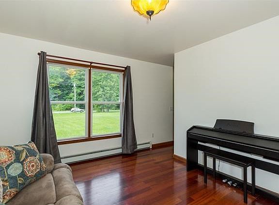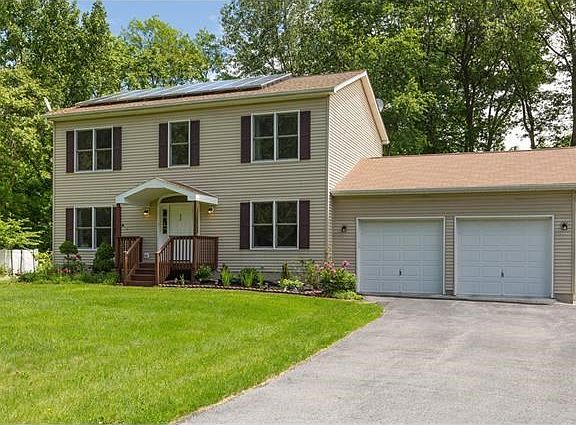 MOVE IN READY! 3/4 Bedroom 3.5 Bath Colonial on .80 acres. Includes owned Solar Panels! Drive up the and fall in love. The front porch measures 5 x 10 bring your flowering pots. Come on into the welcoming foyer with gleaming Brazilian finish floors through out the main level. The large Eat-In-Kitchen is a fabulous space and surely the gathering place. Includes Ceramic tile floors, eat at counter, gas stove and wonderful stainless steel appliances. There's placement choices too! Have a separate dining rm, currently used as a family room, or keep as seen. The upper level has hard wood flooring throughout. The Master bedroom includes master bathroom and walk-in closet. There are 2 other bedrooms and a 4th room currently used for guests. Use it as an office or playroom. Comfortable sized rooms with ceiling fans. Endless choices to suite your needs. Need a finished basement with a full bath? Come on in and see all this home offers. Make it yours!
