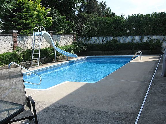 Beautiful 2 family detached on a cul de sac. High ranch with a built in pool-updated-oversized rooms - family room with access to yard and pool. Master bedroom with private bath. Finished basement. 2 bedroom rental with central air & dishwasher on ground level. 2 car driveway & garage. 1 car driveway for rental.