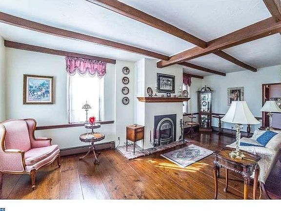 Price Reduced. Don't miss out on this historic & charming colonial in Harleysville PA. This home shows the pride of ownership, along with plenty of character & upgrades throughout the home. The living room has beautiful 12" hardwood floors, exposed wood beams, upgraded wood work & gas fireplace. The kitchen has tile flooring, gas cooking and leads to a separate breakfast room with upgraded tile flooring. The spacious formal dining room has random width hardwood floors, a large bay window and gorgeous brick fireplace. You will absolutely love the four season sun room that offers a gas fireplace, large built in Prizer stove, brick flooring and skylights. The 2nd floor includes the master suite complete with updated bathroom (entrance from hallway as well), separate cozy sitting room & dressing room/ home office.(Could be a bedroom as well) The 2nd floor also has a nice 2nd bedroom with 8" hardwood flooring and the third level offers the 3rd bedroom with its own full bathroom. You will also enjoy the covered patio & brick courtyard that includes a full outside oven. The sellers have taken great pride in this home over the years and replaced the windows, installed new heating system and converted the fireplaces to gas. The home is located in a "C" zoning district and was once used as a bed & breakfast and offers many possibilities. Some of the properties along Mainland Rd. are being used as business professional offices, hair salon & restaurants. As an added bonus this property includes a separate carriage house on the grounds that would make a terrific rental property or additional office space. The carriage home offers a large living room area, kitchen, dining area, full bath, brick patio & 2nd floor unfinished storage area & deck. Please check with Lower Salford Twp. for any & all uses of the residence and carriage home.