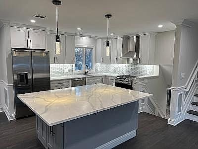 This is the one you have been waiting for! This remarkable home has been completely updated with flawless renovations. This stunning bi-level features 3 bedrooms, 3 full bathrooms, family room, and finished basement. Enter the living space with a modern and open concept for entertaining with today’s colors and modern design. New custom kitchen offers quartz counter tops, large quartz island with additional seating, two-color custom cabinets (white and grey island) , under cabinet lights, glass back splash tile, brand new stainless steel appliances (built in microwave, wine cooler, refrigerator, dishwasher, stove, and hood) New porcelain tiles and custom glass doors in all three bathrooms. New vanities, faucets, and rain shower heads. This home offers a brand new deck off the dining room perfect for entertaining and offers a beautiful yard. The large family room offers access to a two car garage, finished basement that includes laundry room, home office, and play room/gym. Freshly painted, trim work, and crown molding. NEW: doors, hardware, roof, siding, garage doors, flooring, deck, HVAC, recessed LED lighting, finished basement, pavers, custom railing, and 5 home security cameras. Great location offering town pool, lakes, top rated schools, James Fallon Elementary, near Trader Joe’s, Whole foods, restaurants, shopping, and NJ Transit Center. Don’t wait this home won’t last! Eddie 973-460-2300