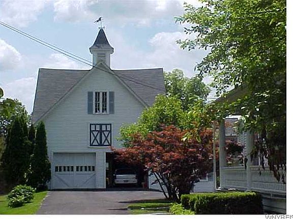 Stately home in heart of Portville village features 5 spacious bedrooms, wrap around porch, beautiful lot with easy-to-maintain landscaping and in-ground pool. Accompanying carriage house offers 2+ parking spots, indoor basketball court, and golf net, with side pool house and 1/2 bath. Special features: quality cabinetry, corian countertops, french doors, built ins, hardwood floors, fireplace, grand entrance/foyer, carpenter's workbench, and so much more. A must see!"
