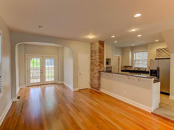 Great renovations and a very open floor plan in this historic home located off King Street! A full front porch greets guests at this classic craftsman style home. A large den features a brick fireplace and recessed lighting. This space opens to the dining area and kitchen in a layout that is ideal for entertaining and everyday living. The kitchen boasts stainless appliances, tile flooring, white cabinetry, a tile backsplash, and granite counters with bar top that can accommodate more seating for guests. The pantry under the stairs provides deep storage space, and a full size laundry room has shelving for additional storage. A full bath downstairs boasts a tile floor and is convenient for guests. You'll find a flexible room at the rear of the home that can be used as an office, play space, or sitting area. French doors lead to a large deck and fenced backyard. Going upstairs, note the Brazilian cherry wood treat with beautiful metal work bannister. The spacious master bedroom offers recessed lighting and a private bath with tile floor. Another large bedroom at the front of the home has a double window, letting in lots of natural light. A 3rd bedroom shares the full bath in the hallway with tile floor and soaking tub/shower combination. The exterior of the home was just painted, and buyers will be pleased with the amount of renovations that have gone into this historic home. (Be sure to note the new floors downstairs that were just installed.) Smooth ceilings and recessed lighting throughout! No carpet ââ,¬âEURœ only laminate wood floors and tile! Plus, the driveway allows you to park off the street and can accommodate 2 to 3 cars. If you're looking for a location off Upper King that is close to parks and restaurants, check out this new listing!