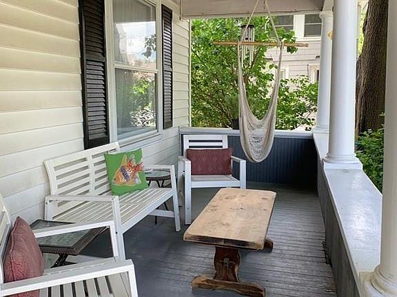 Dreaming of a "sittin' porch? where you can relax on a hot summer nite.... and even watch the town fireworks right from your own porch without dealing with the crowds? Well, you just found it! Grand "Four Square" Colonial with classic features, spacious floor plan and an easy location where you can walk to town, shopping, schools. Formal Entry, LR with corner Fireplace, Kitchen brimming with countertops and solid wood cabinets, nice maple floors, original leaded windows and built-ins, too! 2nd floor master BR has 2 closets, and a private enclosed porch for stealing a little quiet time for yourself! There's a huge walk up attic with bonus space, and tons of storage area. Super basement, partially finished rooms and actually dry according to the owner, unusual for in town Greenfield home. Brand new boiler & hot water system just installed this year. Fenced yard is private and big enough for outdoor play for kids and pets.
