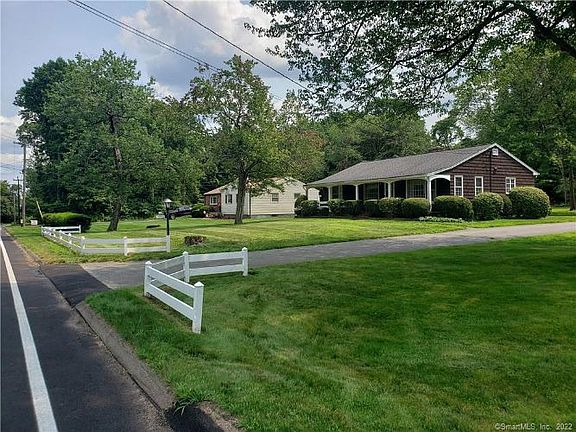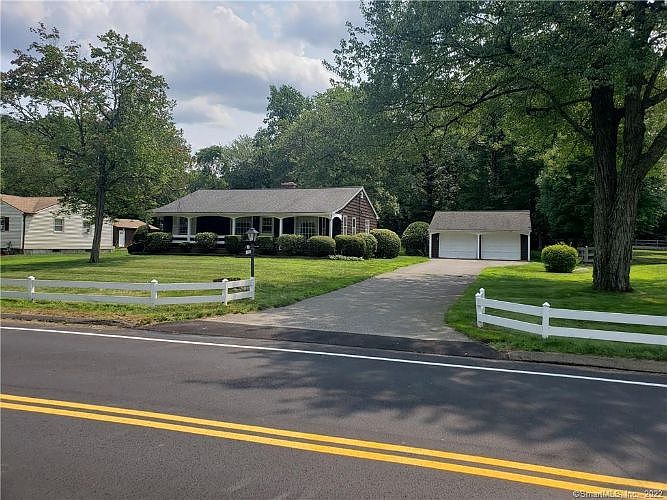 Well built one owner builder ranch with a warm cozy bright country charm inside and out. Driving up you are greeted by a split rail fence and a large full front porch. Entering the large living room though a Dutch door the large fireplace with hardwood floor. Dining room has hardwood floor with large bay window. Open galley kitchen with breakfast bar that opens to the den. Bedrooms are oversized master bedroom has large bay window with full window seat. Basement has laundry area, lots of storage and a work area with a walk out to backyard. There is an oversized detached two car garage 24x24 ith workshop area and double garage doors to pass through. On the level back yard there is a large wood storage shed with electricity.Home has a brand new furnace and oil tank with a newer roof, updated electrical service panel. Home has central vacuum system house audio system new wi-fi controlled garage door openers Please practice all Covid guidelines.