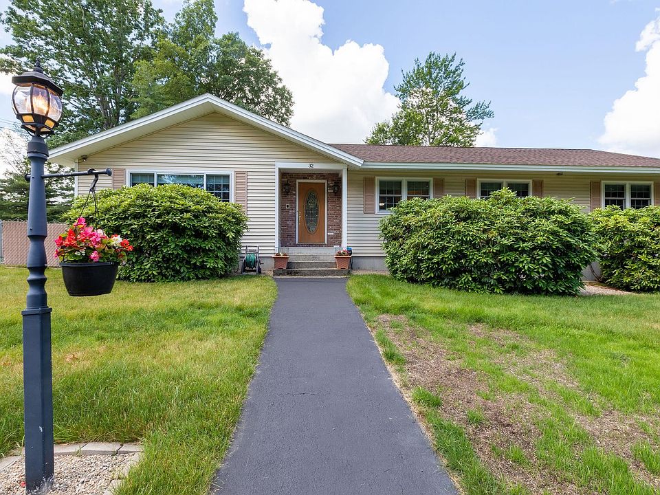 Impeccably maintained Ranch! Pride of Ownership! 3 bedrooms, 1 full, 3/4 and 1/2 baths. Master bedroom with bath. Beautiful hardwood flooring. Granite countertops, stainless steel appliances, New windows throughout home, amazing sunroom with a ton of natural light. central air, finished lower level with built-in bar, office and brick hearth. This home has a ton of storage! 2 car garage, Whole house generator, corner lot, meticulously maintained yard!, beautiful deck. Nothing to do but move in! Commuters dream, minutes to rt93, minutes to all your shopping needs, including the Tuscan Village. Accompanied showings required