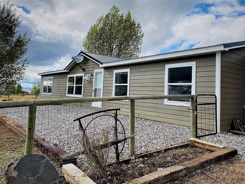 Looking for an opportunity to grow your family and a change in lifestyle. Located just under 2 miles east of the very active and friendly small rural town of Sheridan Montana. This de-titled manufactured home is on an engineer certified concrete foundation nicely situated on 20 acres. The home features 4 Bedrooms and 3 full baths. Ample living room area, dinning and a very nice kitchen. Laminate flooring in the main living area, tile style flooring in the kitchen and master bath with carpet in the bedrooms finish off the interior. New metal roof and siding in 2021. Open pastures for your livestock flanks the home and out buildings on three sides providing a private setting with incredible views. A very large 1445 S.F. partially insulated 4 vehicle garage/shop with 4 overhead doors, additional attached 12 x 30 storage area and a 1170 s.f. quonset equipment storage structure compliment the property for a family wanting an active lifestyle.
