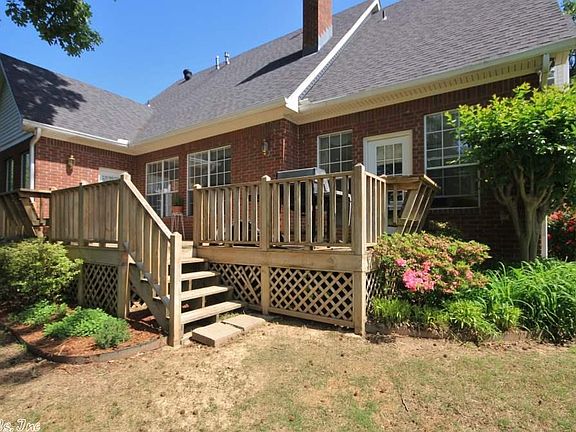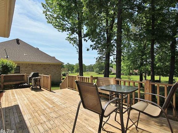 Beautiful all brick on golf course with deck and wonderful back yard setting to relax or entertain! Enter on hardwoods to kitchen with casual dining and den area. All glass windows from den to Living area, with real wood burning fireplace, bar area and formal dining. Kitchen has solid granite counter tops, ceramic cook top with down draft on island with lots of wood cabinets. Master on main level with two bedrooms with jack and jill bath on 2nd floor. Lots of storage in closets and large walk-in attic.