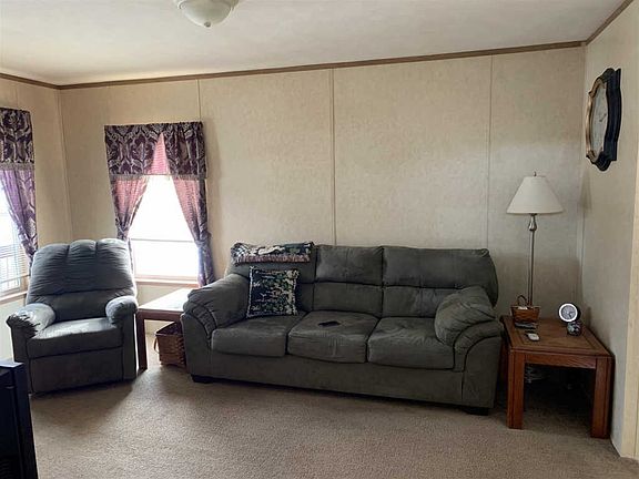 This 2015 Chesapeake Double Wide is very roomy and has an open layout upon entering from the front covered porch. The master bedroom has 2 closets and a full bathroom. The other 2 bedrooms are off from the living room with another full bathroom. Laundry room has the back door access. Property also has a storage shed that is roughly 2 years old. Paved parking for 2 cars. Delayed showings start Monday 2/15/21