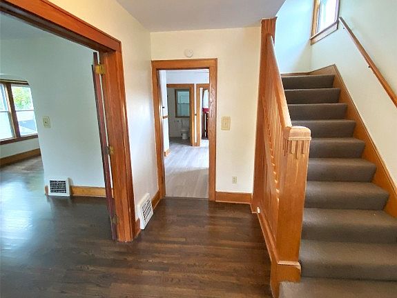 Newly updated two story single family home in a quiet Binghamton neighborhood. 3 Bedrooms, 2 1/2 baths. All replacement windows. Refinished hardwood floors. New laminate Kitchen floor. Carpeting in 2 Bedrooms. French doors to Living Room. Clean, dry basement with workbench and storage room. New furnace. 200 amp service. Shed. Covered front porch. Enclosed back porch. Open deck overlooks deep fenced back yard.