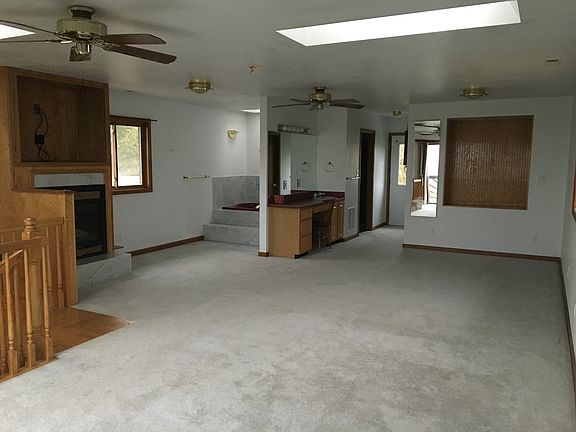 This home offers an open floor plan with large living room attached to the kitchen and dinning area. The custom built oak spiral stair case leads up to the large master suit complete with skylights, jetted tub, spacious walk in closet and private deck. The property has large mature trees along the property line and has a sprinkler system throughout. The exterior has just been painted and the stain to re- stain the deck. There is also live running water year round. The large shop has built in heated wood shop and plenty of space for all of your toys.