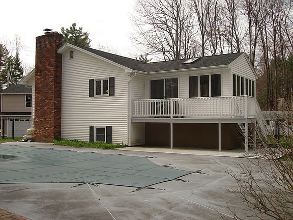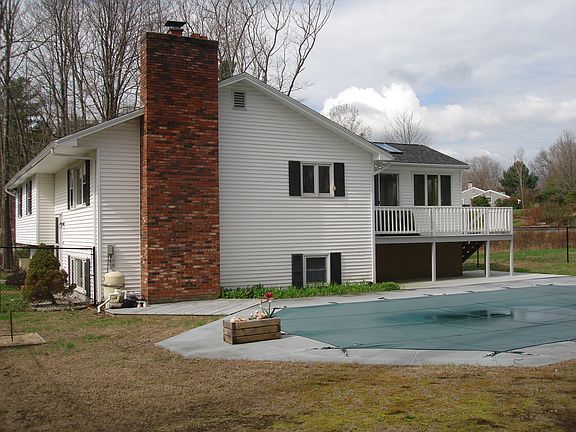 Nothing to do here but move in! Deceiving 8 room, 3 Bedroom, 1.5 Bath home has been painstakingly upgraded inside and out using only quality materials and workmanship, all within the last 8 years. Remodeled eat-in Kitchen with granite counters and French doors opening to the cathedral ceiling 4 season Sunroom, fireplaced Living Room and a spectacular finished lower level, perfect for entertaining with mobile oak bar, oak paneling, tile floor and pellet stove. The pièce de résistance is the 40'x24', 2 story, 8' clearance, 3 stall detached Garage to store all the "toys" and more! Completely open 2nd floor offers numerous possibilities. Includes 100 amp electric and generator backup. Wooded 1 acre corner lot convenient to shopping and major commuting routes. Additional amenities include hardwood and tile floors thru-out, central air, whole house generator, in-ground pool and much more.