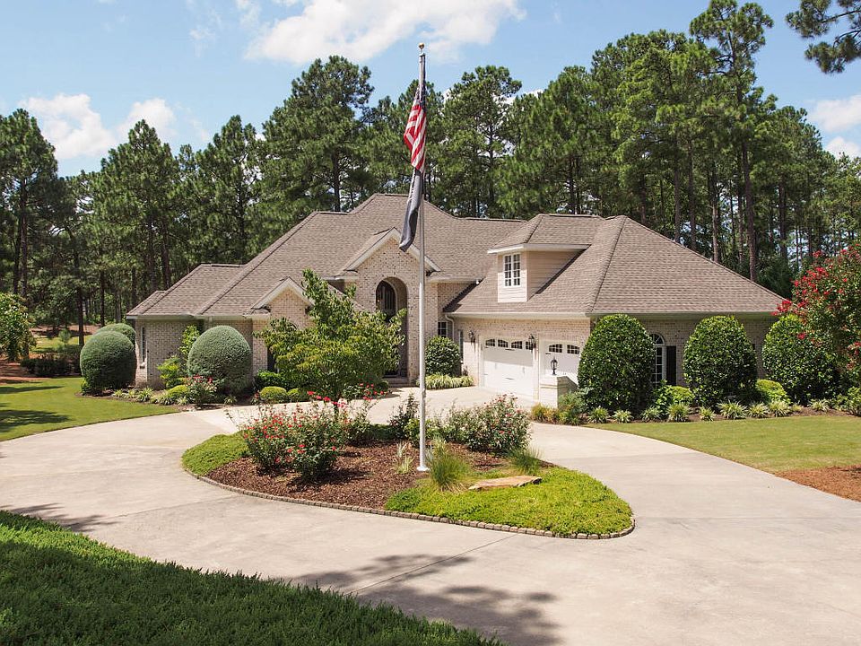 This drop dead gorgeous golf front home has too many upscale features to list. The great room features soaring window walls that overlook the expansive patio and the 2nd tee off the 2nd hole of the Holly Course at Pinewild Country Club. There is a gourmet kitchen with top end appliances and adjoining keeping room, lovely formal dining room. The main level master suite is spacious with a huge master bath with a large walk-in closet and there is also a main level study/den. Sheltered porch is ideal for outside entertaining. Upstairs there's a inviting loft and two large bedrooms with a jack and jill bath and cozy bonus room with surround sound and ensuite bath. Chateau curb appeal is outstanding.