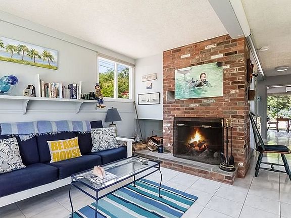 Ocean pond views from this California split-level with summer charm. This much loved home is bright light, with 5 bedrooms, 5 baths. There is plenty of room for family friends, which has slept up to 14 people. With 3 bedrooms, 3 baths in the main house, with internal as well as an external access, there are also 2 bedrooms, 2 baths an office area in the guest wing, also with some ocean views. The guest wing is handicap accessible with handicap bath along with a separate parking spot An expansive deck connects these two portions of the house, along with a 29 X 12 screened porch which is a spacious gathering place for the family. When not grilling, the galley style kitchen is efficient with a magnetic induction stove to help with the family meals. The fireplace in the living room can be handy on a chilly evening;or, when the weather is pleasant have your morning coffee on the patio located just outside. The basement portion of the house is home to a ping pong table for those rainy days when not going to one of the two private beaches; or, playing tennis on one of the eight association tennis courts. In addition to a carport for 2 cars, there is a bike shed with concrete flooring. A smaller separate area in the carport could also be used as a workshop/storage area. House being sold furnished. For a 3D tour of Meadow, just click the small brown reel at the top. When on the screened porch viewing, hit the small white circle to travel to the guest wing.