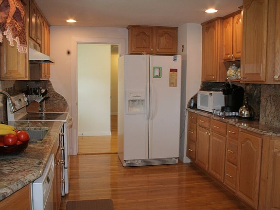 Serenity found! No back-door neighbors. Only tranquil views to drink in from sun-drenched living/dining rooms or from back deck while enjoying bbqs with pets/kids playing in football-field-size yard. Move-in ready - $200,000 already invested in home updates - both interior & exterior! Begin your family in this cozy home or downsize to it. Finished basement provides extra room to spread out in. When you need more room, expand house up or out. Child-safe, low-traffic, cul de sac street within walking to Xaverian High School. Premier location: minutes to shops, restaurants, T, hi-way, exemplary schools. Flexible floor plan: make bed 4 into office; living rm into combo living/dining; dining rm into kids' playrm. Easy grocery unloading with garage off kitchen. Oversize garage great for storage/large vehicles. Attic storage w/pull-down stairs. Perfect orientation for conversion to solar power! Many garden beds for green thumb. Priced below assessed value. Complete details, videos on Zillow.