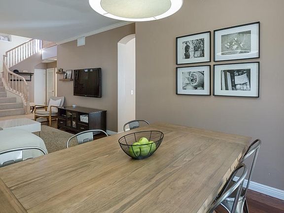 The Coronado, the largest model, represents Mirasol's premier statement of elegance. You'll step down from the grand foyer into a luxurious living room featuring high ceilings with beautiful crown molding, which leads to a comfortable dining and family areas; the last offers a niche with built in shelves. Your gourmet kitchen includes granite counters and a breakfast nook, with custom built in bench seating. Sliding glass doors from the dining area and family room take you to the patio area to just relax or enjoy summer BBQ's. On the upstairs level, you'll find three specious bedrooms plus a generous loft, which can be used for a study or a playroom; builder did have a 4th bedroom option available. The sumptuous master suite features a walk-in closet plus a separate tub and shower in the bath. The Coronado: sophistication and space to spare. Additional features not to miss include the inside laundry with both gas & electric hook ups, a 2 car garage with direct access, central A/C, wonderful gated community with pool and 2 spas. The desirable location has award winnings schools, near toll and freeways, short walk to city park and so much more!
