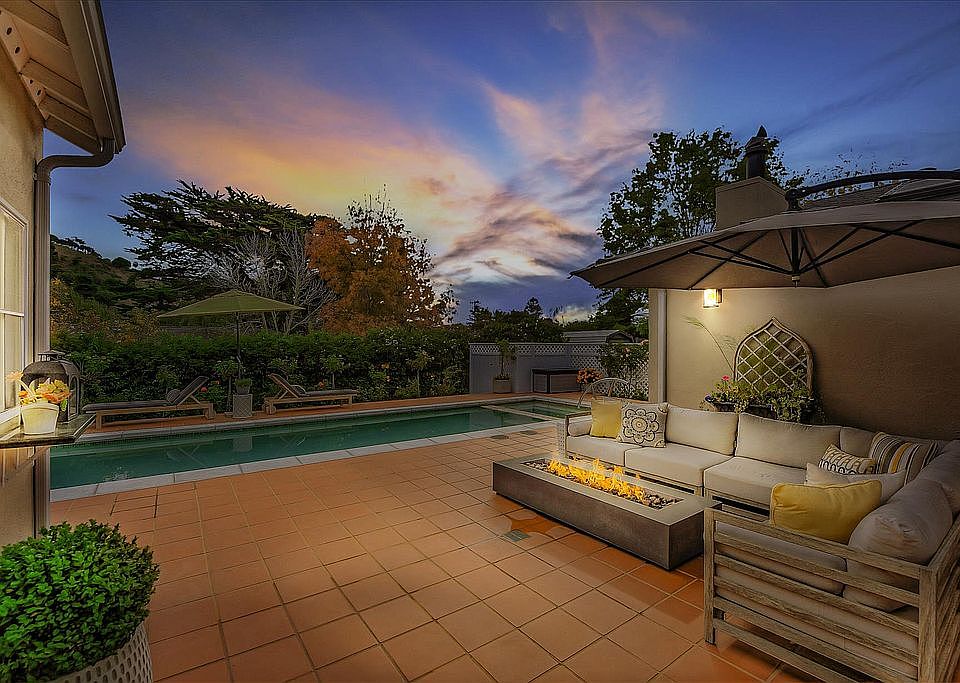 This meticulously remodeled Belveron home provides graceful, private, indoor and outdoor living. The desirable, single-level home with an open floorplan is ideal for entertaining with a kitchen, dining room and master bedroom all opening to private backyard oasis. The inviting kitchen boasts granite slab counters, a Sub-Zero fridge, Wolfe range, Bosch double oven and dishwasher and a huge, approximately nine foot island. The roughly 40 feet solar heated saltwater lap pool and spa are drenched in natural south facing sunlight that provided a tropical ambiance. Other home features include fire sprinklers, ceiling speakers, recessed lighting, three wood-burning fireplaces, a tankless water heater, dual-pane windows, skylights, A/C, a built-in desk and a finished garage with lots of storage. Relax in the private fenced flat yard filled with camellias, roses and lots of fruit trees. This is truly a gardener's dream. There are preliminary plans for an expansion of one bedroom and one bath. Enjoy being located a short distance from Tiburon's award-winning schools, Blackie's Pasture and the waterfront bike path.