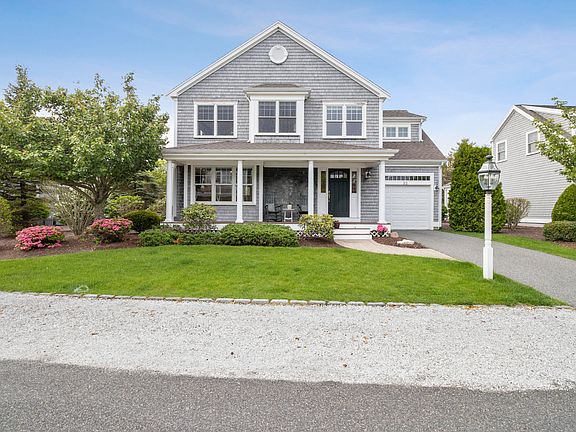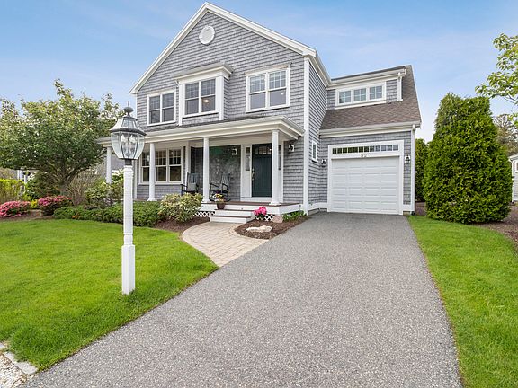 Rare opportunity in Mill Farm Way. This expansive free standing unit is bright and airy with beautifully scaled large rooms. After relaxing on the farmers porch step into the formal entry that opens to the living room with hardwood floors, fireplace and beautiful built-ins. The formal dining area has sliders to the patio and yard for your outdoor entertaining. The first floor master suite is perfect for guests or allows you one floor living. The 2nd floor features another master suite, loft area, additional bedroom and full bath. The full lower level is great for storage or could be finished for addition living space. The attached single car garage and additional parking make this unit a must. All this and more convenient to Falmouth Center, beaches and major highways.