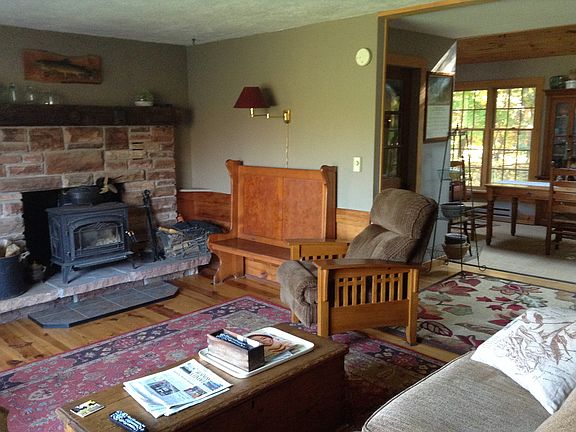 This beautifully renovated home provides a mix of old and new and is situated on a very private 2.6 acre lot just outside the Village of Potsdam. Enter at the garage level into a tiled mudroom, then walk up to the main level of the house. There are two family rooms, one with a wood stove insert and one with a built in cherry entertainment cabinet. The eat in modern kitchen comes complete with cherry cabinets, a gas range, solid surface counter tops and a breakfast bar. A formal dining room with vaulted ceilings and tall windows provides a great space for entertaining or family meals. All rooms have natural wood work, refinished pine floors and lots of windows to enjoy the peaceful views of nature. This four bedroom home has three bedrooms and a full bath upstairs, with one of the bedrooms having an attached office or study area. The master bedroom suite is above the garage and has its own seating area, bathroom with jetted tub and three closets. For outside enjoyment, there are three decks; one with an in deck pool, and plenty of open space for gardens. Exterior siding is an attractive combination of brick and stained Canadian red cedar boards. Tucked away out of sight, yet close to all amenities; make your appointment today to see all this house has to offer.