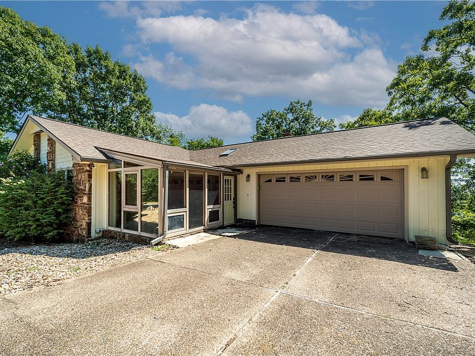 Enjoy a breathtaking view of the Ozarks from your bedroom or deck in this three bedroom, two bath home in Holiday Island. Two car attached garage with an extra garage in back for motorcycles, golf carts, or small water craft. A sun room in front makes a lovely place for growing herbs or flowers and a xeriscape yard provides low maintenance. Only a couple of minutes to the lake and amenities such as post office, gas station, grocery store, and restaurants. Call for appointment.