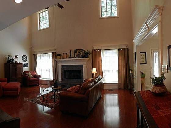 Large arched brick entry opens into vaulted greatroom. Walls of glass overlook private yard, backs to green space! Lush landscaping w/Trellis/gazebo & HUGE DECK! Open kitchen w/black granite island, counters, & matching breakfast table surrounded by white cabinetry for dramatic feel. Formal dining w/wainscoating. Guest br w/full bath on main level plus Office/study can be 2nd bedroom on main level. Large master; bath w/corner whirlpool, glass block, separate shower, two sink areas+vanity. Gameroom up/4th br Brokered And Advertised By: Adkins, McNeill, Smith & Associates Listing Agent: Rebecca Sudduth