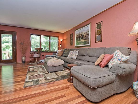 Welcome Home! Immaculate well maintained 3 bedroom, 2 bath raised ranch on a country style and serene 1.9 acre lot. Vinyl siding and energy efficient window replacements with outdoor flood lighting. New 25- year roof installed in March of 2015! Large open floor plan features Brazilian Teak flooring and beautiful views through the bay window. Fully updated kitchen with access to the backyard patio. Updated Master Suite with a large WIC and master bathroom with double vanity. Updated full bath on the first floor with a jacuzzi jetted tub and glass shower doors. Partially finished basement with a bonus room, laundry room, and workshop area. Paradise awaits in the backyard resort with a new 16x30 built-in oasis shaped, lighted pool. 1 Year Home Warranty Included for Buyers!