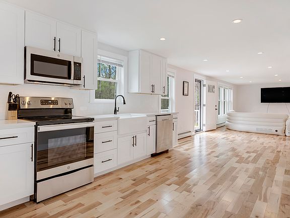 MOVE-IN to this fully remodeled 3 bedroom 2 bath house situated on a private wooded lot. This home has been renovated from the roof down through to the entire house. It's like a new house. Centrally located in the heart of The Lakes Region, it takes only 5 minutes to get to Mousam Lake Boat Launch and Public Beach. 15 minutes or less to Sanford for shopping and all your in-town amenities. This 3 bedroom Ranch offers 1st floor living with many updates, a new roof, new electric, a new on-demand heating system, a stunning new kitchen with Michelangelo Quartz countertops and stainless steel appliances. Hardwood floors throughout the main living areas. The house has been sprayed with foam insulation for high efficiency and energy savings. The Primary bedroom has an en suite bathroom complete with a custom shower. The house sits on over 2.49 acres of privately wooded level ground with beautiful stonewalls.