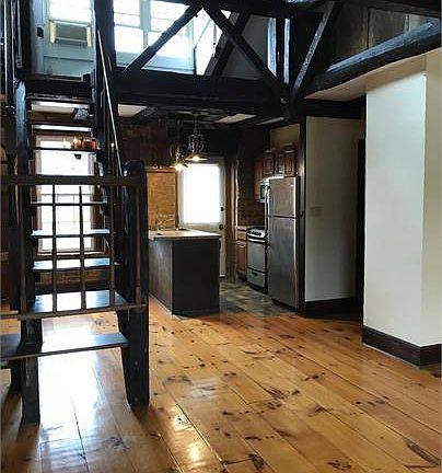 Close to Lawrence the Indian and across from Arthur's Market in the heart of the Historic Stockade District, this handsome Federal style center hall mansion fronting an original 1700s Dutch cottage boasts 9 apartments. This open floor plan 1 bedroom apartment features charming historic character, including wood floors, high ceilings, stain glass, exposed brick in your spacious bedroom, its own resident controlled high efficiency gas heating system. Eat in kitchen with gas stove and refrigerator. There is a well equipped laundry facility on-premises. Hot water is included in your rent!