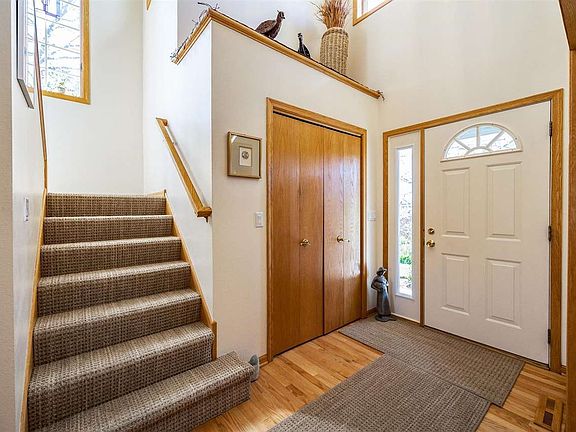 This home has what you've been looking for--an idyllic acreage with a location that puts you just 10 minutes to both Iowa City and North Liberty! Make the most out of indoor and outdoor living with peaceful views from all the windows and a spacious deck that overlooks the lovingly landscaped yard with an amazing assortment of curated perennials. Gorgeous hardwood floors flow through the main level. You'll enjoy the best of both worlds--an open concept kitchen with a breakfast nook which flows into the living room, but also a formal dining room. Two gas burning fireplaces keep rooms cozy during Iowa's colder months. Upstairs you'll find three plus bedrooms. The primary has an ensuite bathroom and walk in closet. The two additional bedrooms are graciously sized, and one includes the "plus"-- a double room! A perfect bonus room for whatever you may need. There's security in knowing this house has enjoyed meticulous upkeep over the years including a kitchen update, bathroom renovations, new furnace (22), new AC (19), hardwood floor refinishing, new carpet, roof replacement and more. Spring Valley HOA members enjoy use of a community pond, picnic area and walking trails!