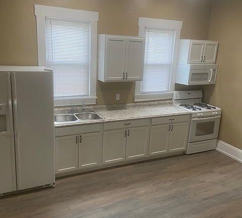 Nice, Large, Spacious Home! This house has laminate flooring throughout the entire structure. Cabinets are perfect, huge closet space, and with a fenced in back yard and pets are welcome as well. This is a LARGE two bedroom Home that also includes central air and gas furnace. Pictures tell all. Please contact us by phone for a short interview prior to viewing.