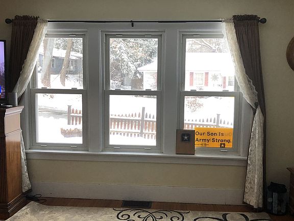 1928 Gambrel home on village lot with one car garage and fenced in back yard. Hardwood flooring. Spacious and sunny living room, Dining room, kitchen with new appliances. Enclosed back porch with half bath. Second floor features 3 good sized bedrooms and a full bath. New roof, Aluminum siding, vinyl tilt in windows. Dry block basement foundation, forced hot air furnace and a wood stove for extra heating on cold winter days. hot water tank rented. close to Medical Center, schools and Plaza.
