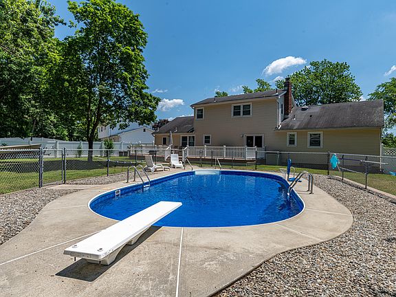 Beautiful Long Fellow model with four bedrooms and three full baths offers two master bedrooms with one on the first floor and master suite with sitting room on the second floor plus two walk in attics. This lovely home with remodeled kitchen and baths boasts hard wood floors, a fireplace in the family room and sliding glass doors leading out to a beautiful and spacious back yard with separately fenced inground pool. There also is a basement which offers storage or expanded living space. Desirable Candlewood development convenient to shopping and public transportation.