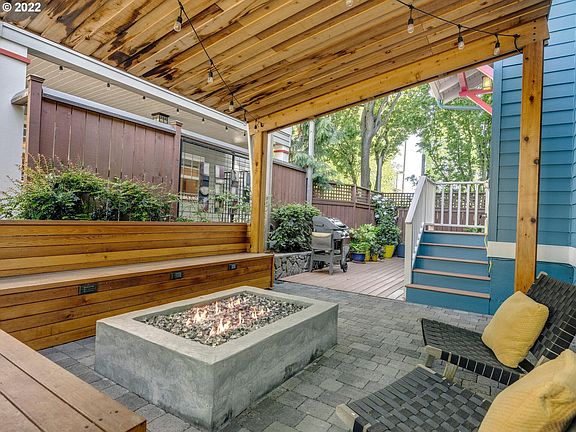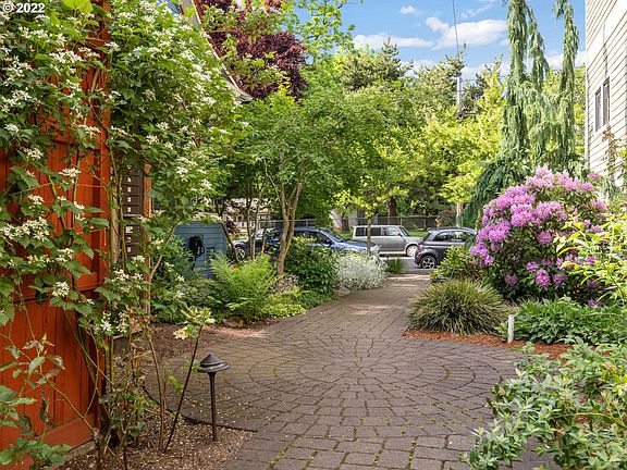 Meander down the path through a lush garden or park in the designated space conveniently near your front porch. Single family energy efficient 2009 craftsman home in a private cottage-like setting with covered patio, outdoor fire pit & deck. All the charm of yesteryear w/ modern conveniences- open floor plan, bookshelves, vaulted ceilings, crown molding, bamboo floors. Well appointed quartz kitchen has celadon glass tile accents & gas range. ADU potential in lower level. 92 walk score. [Home Energy Score = 8. HES Report at https://rpt.greenbuildingregistry.com/hes/OR10202244]